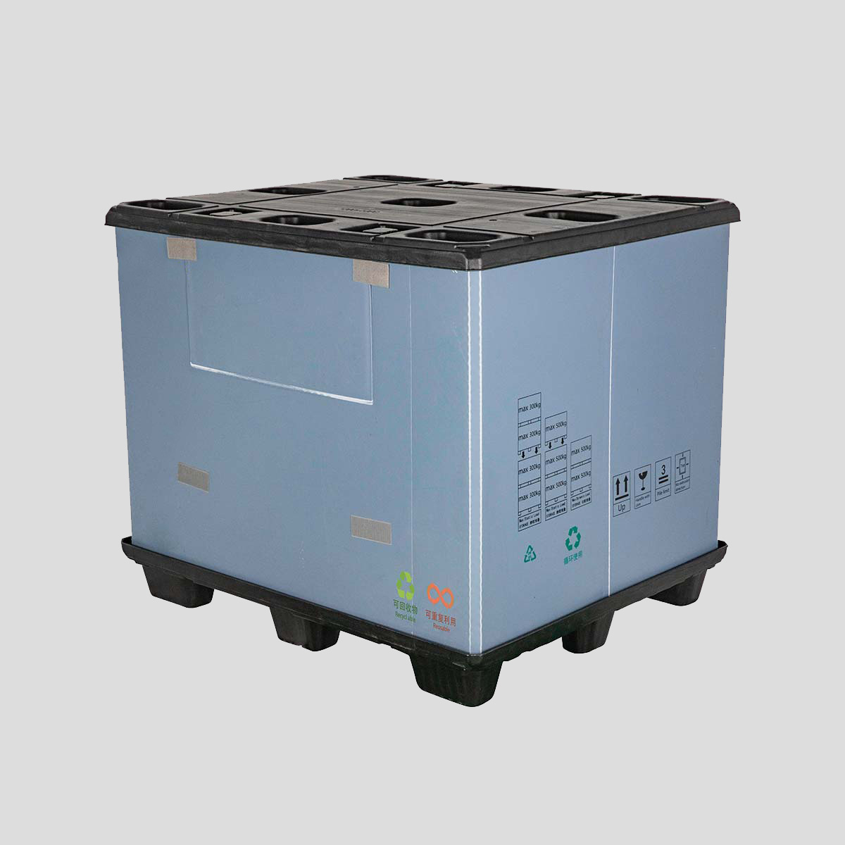 本产品专为仓库、物流及周转系统提供理想解决方案,具备质轻、承重强、可重复使用、可折叠等优势。相较胶合板箱,本品更轻便且防虫;相较普通纸箱,更耐用且防水。