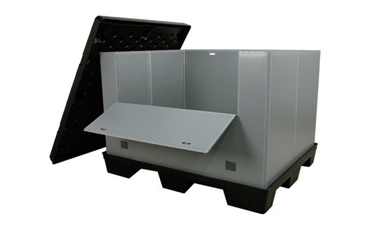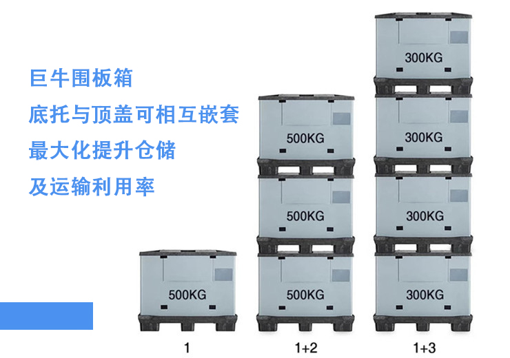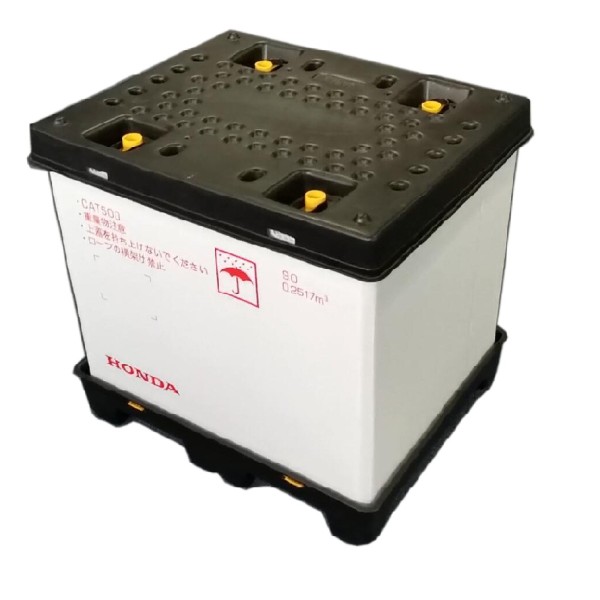 一套围板箱由HDPE底托、可折叠PP聚丙烯蜂窝板及HDPE顶盖组成。底托与顶盖可嵌套堆叠,使整套围板箱实现稳定堆垛,有效提升仓储与运输空间利用率。